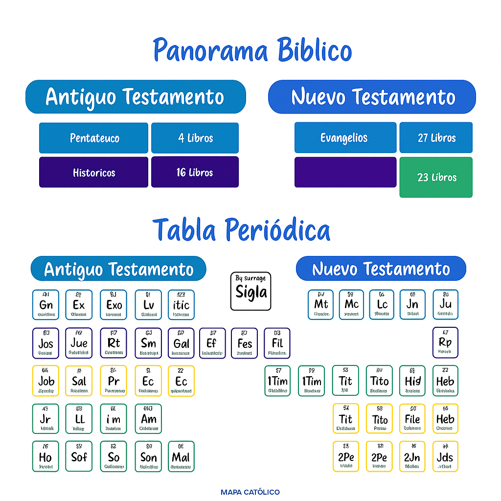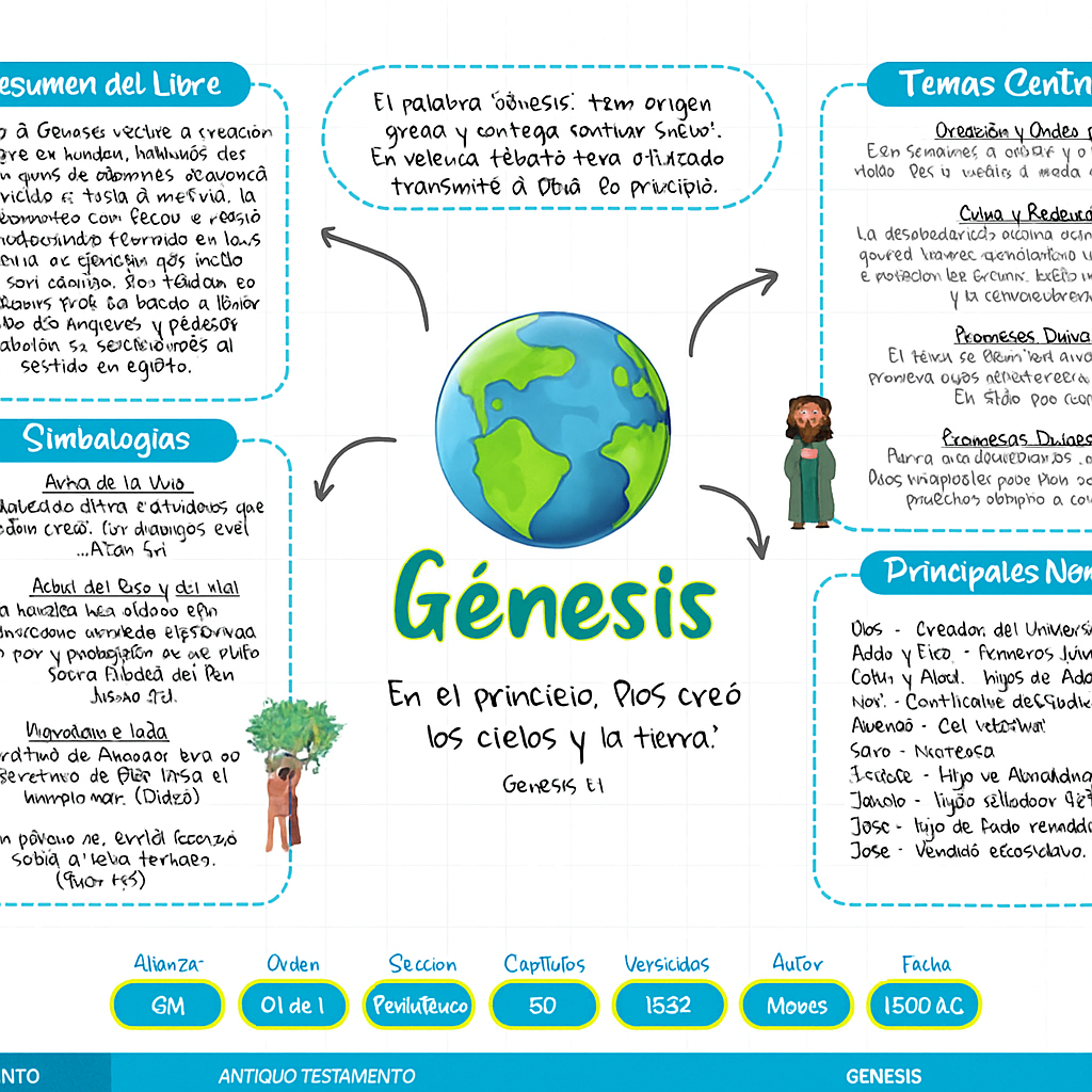 Explora cada uno de los 73 libros de la Biblia de forma clara y estructurada, con resúmenes y elementos esenciales que facilitan la comprensión de la Palabra de Dios.
